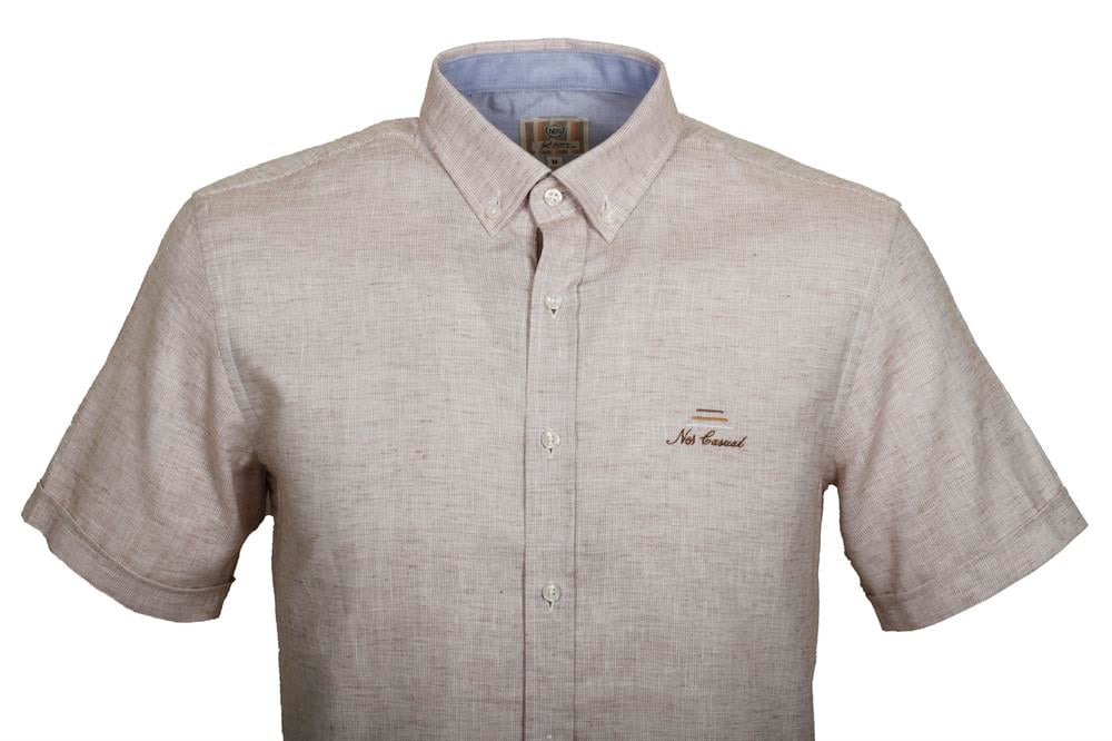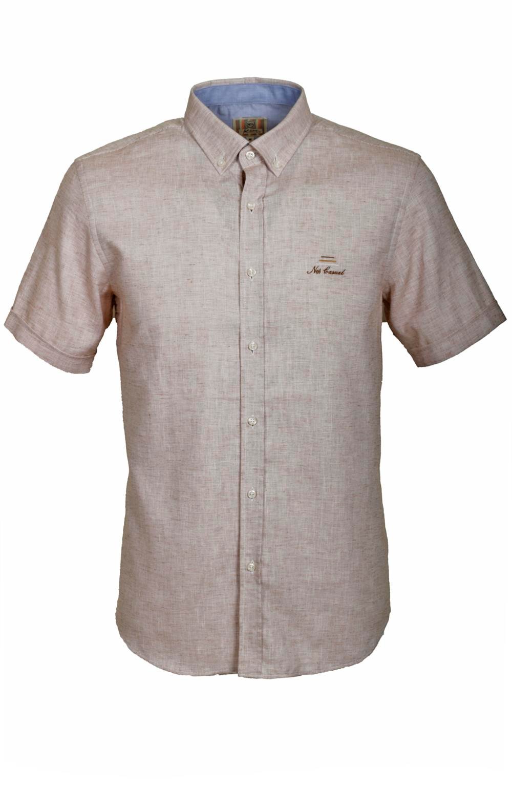 Erkek Bej Kısa Kol Yazlık Gömlek Slim Fit Düğme Yaka Pamuklu İnce Kumaş JEANS 7174 SHİRT (7174)
