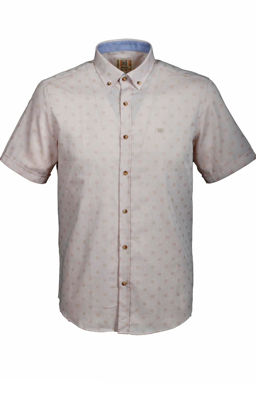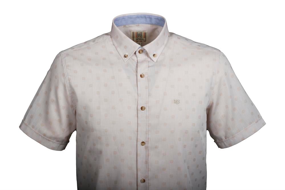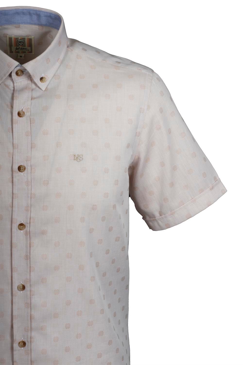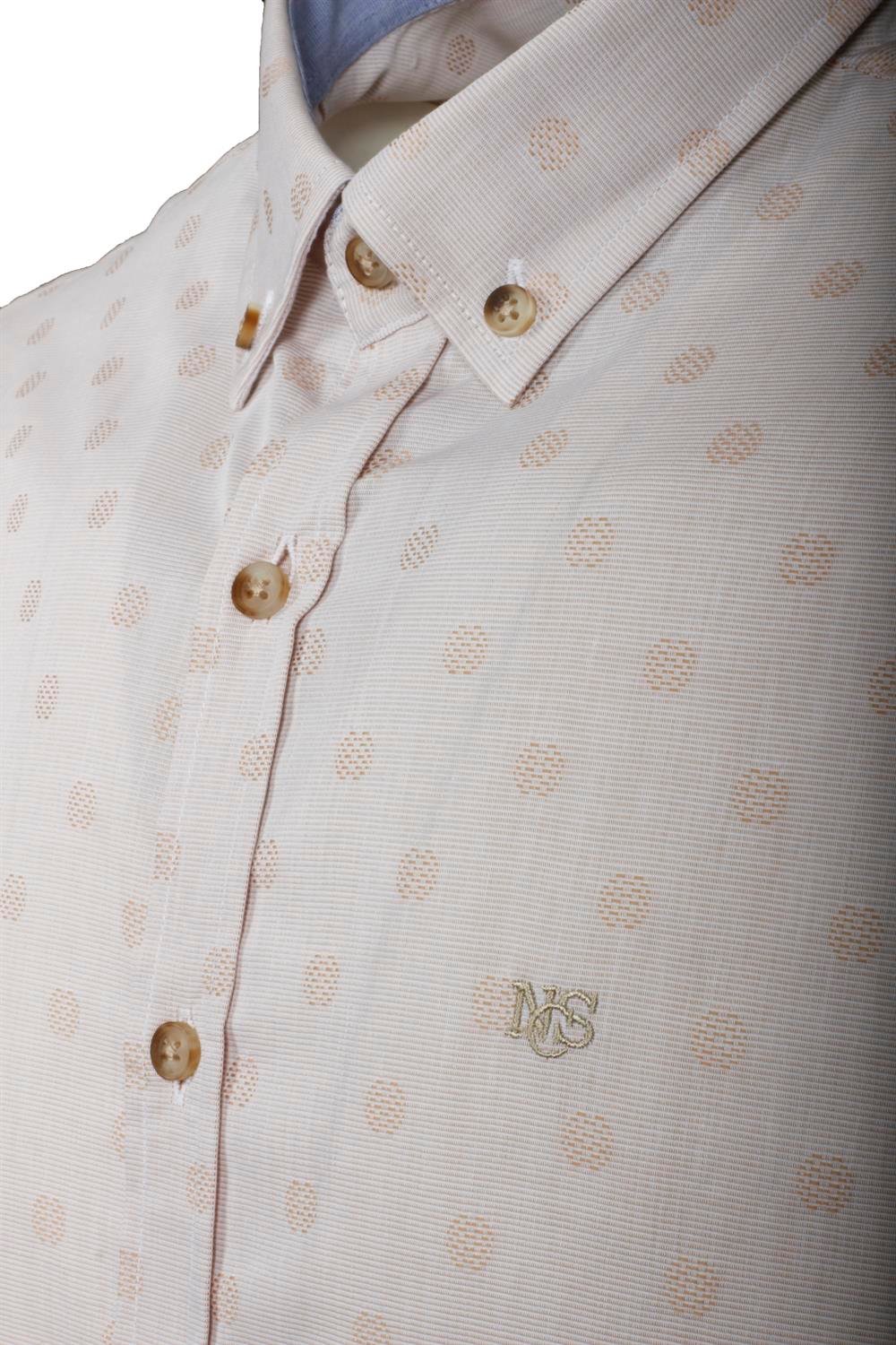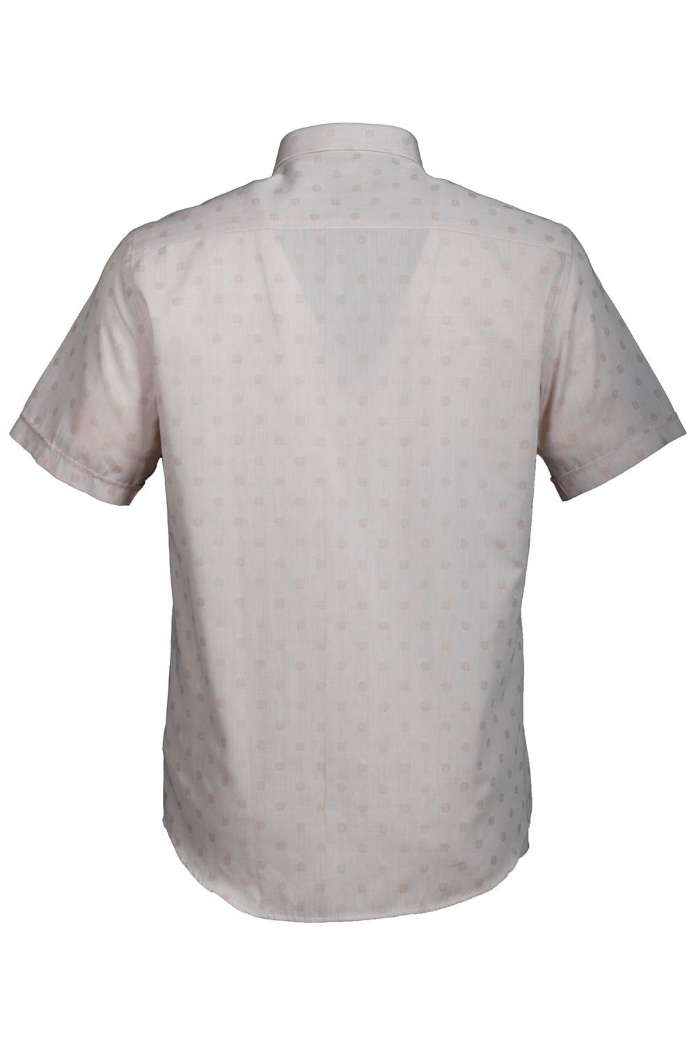 Erkek Bej Kısa Kol Yazlık Gömlek Nokta Puan Desen Slim Fit Düğme Yaka Pamuk İnce Kumaş JEANS 7173 (7173)