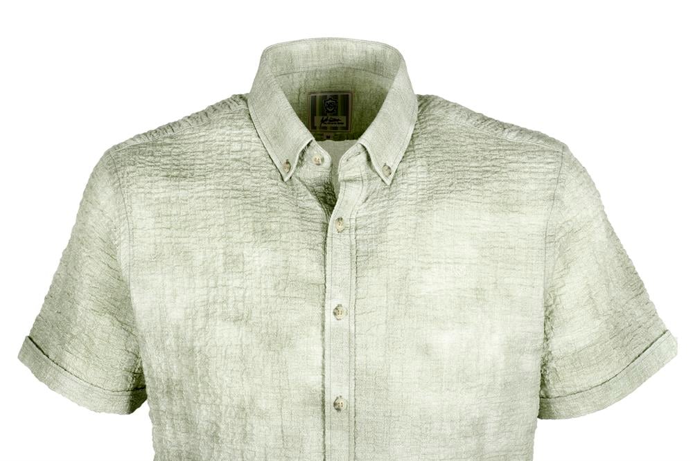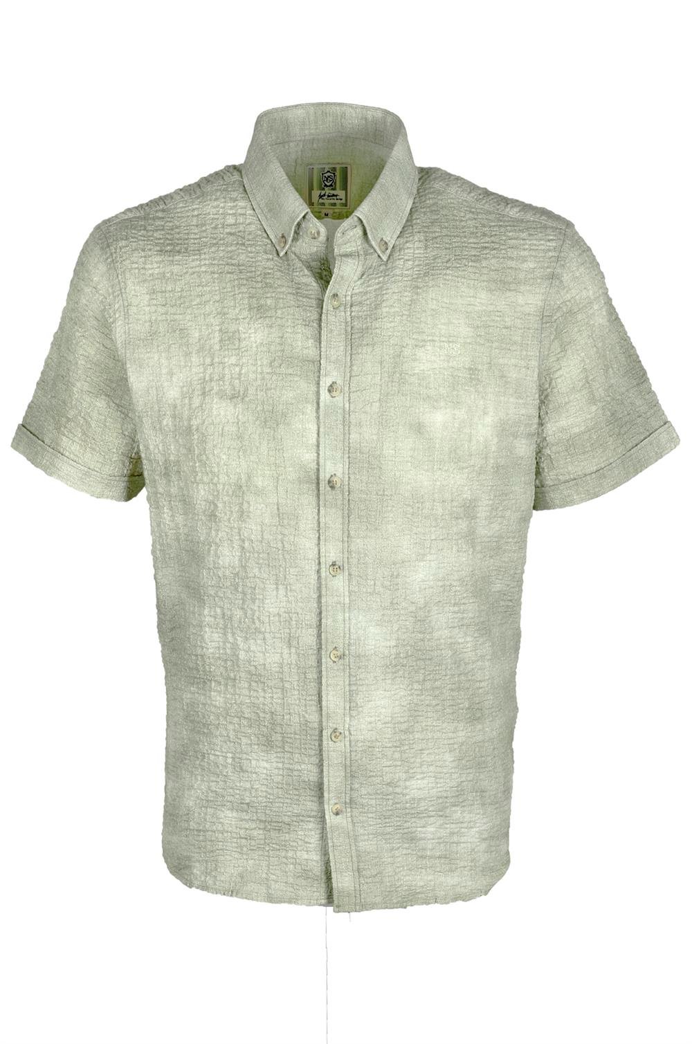 Erkek Haki Gofre Kumaş Slim Fit Dar Kesim Düğme Yaka Kısa Kol Gömlek Jeans 7232 (7232)