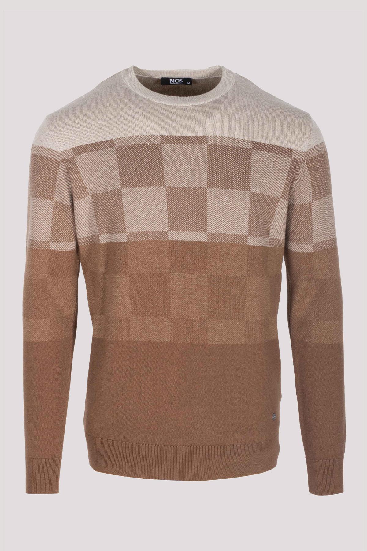 Erkek Triko Kahve Bisiklet Yaka Desenli Slim Fit Pamuklu Kazak NCS JEANS 3730 (3730)
