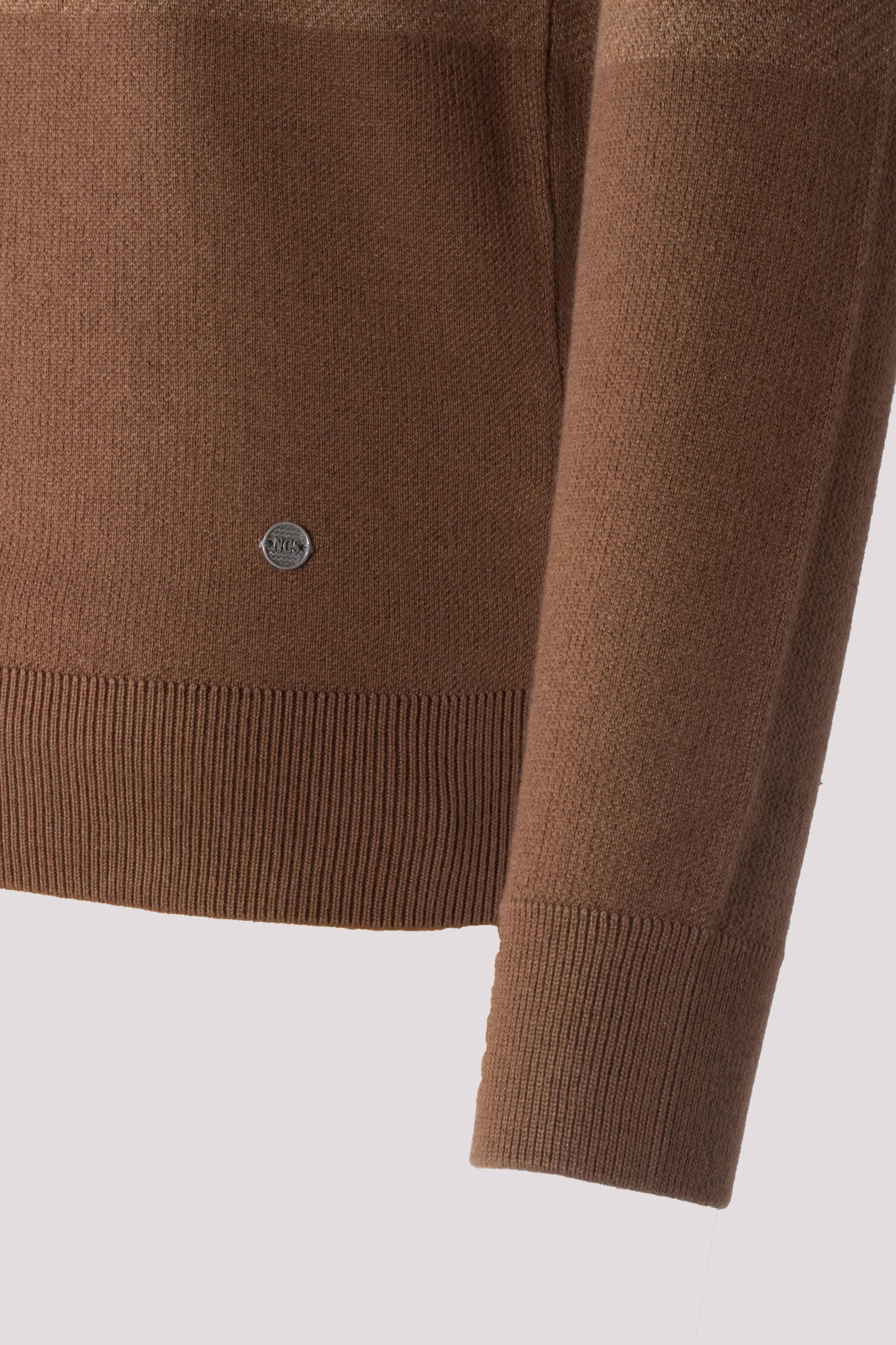 Erkek Triko Kahve Bisiklet Yaka Desenli Slim Fit Pamuklu Kazak NCS JEANS 3730