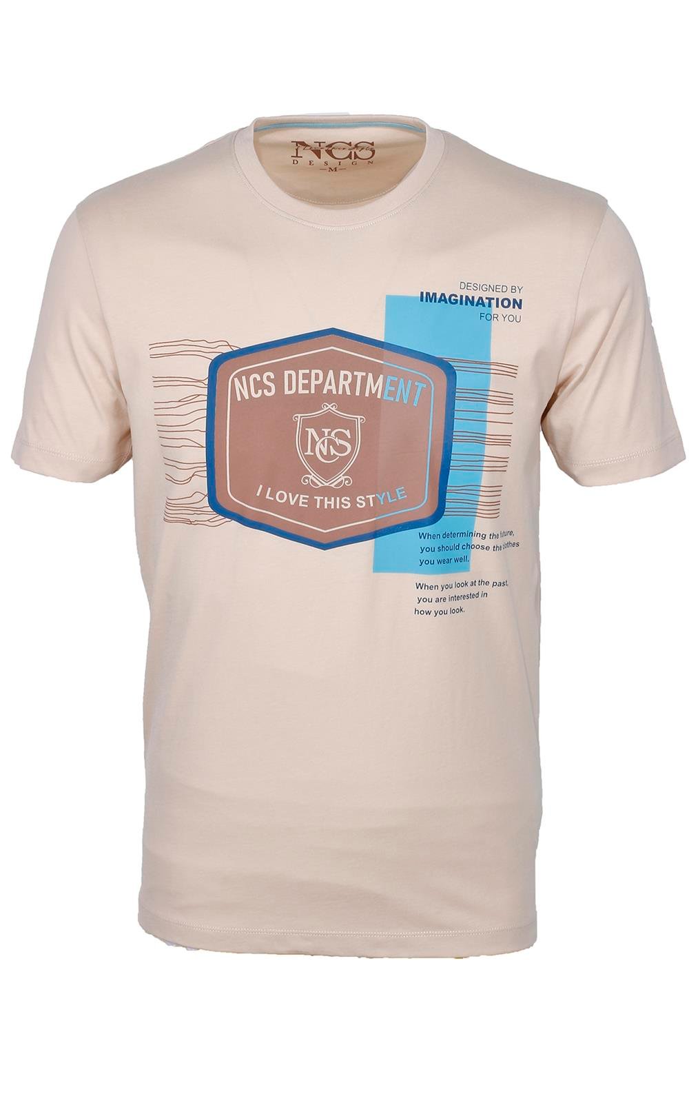 Ncs Bej Bisiklet Yaka Slim Fit Dar Kesim Baskılı T-shirt 1216 (1216)